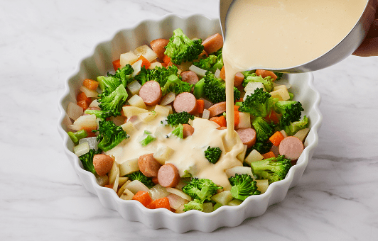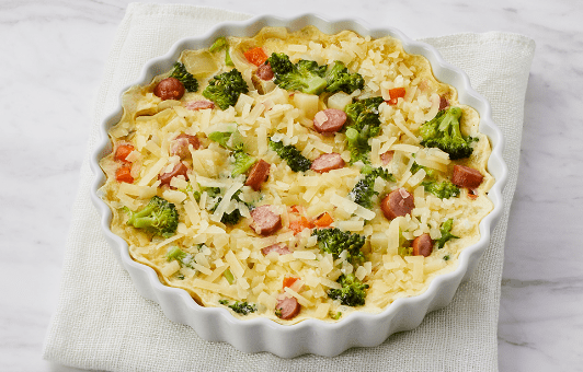 ボウルに卵を割りほぐし、Bを混ぜ合わせ、①に流し込む。