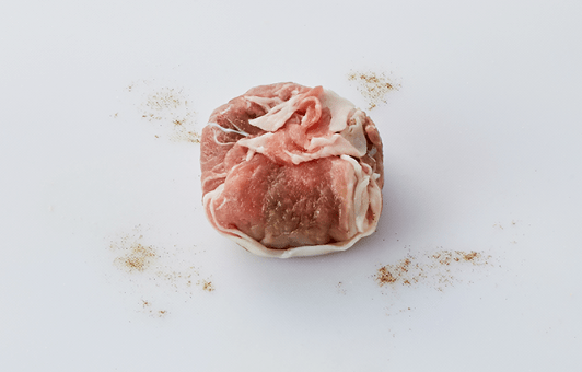 野菜を包むように豚肉を折りたたみ、手で軽く握って豚肉と野菜をくっつける。残りも同様にする。