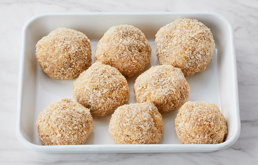 ②に薄力粉、卵、パン粉の順で衣をつける。