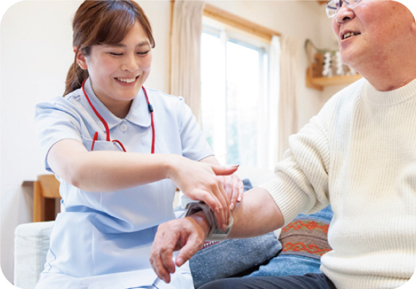 看護師が訪問し、介護ケアを提供、療養生活を支援。