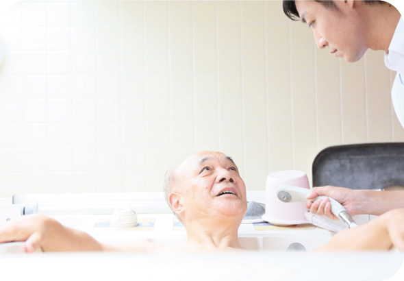 看護師や介護職員が訪問、お部屋での入浴をサポート。